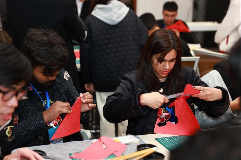 春节,是我国最为重要的传统节日,承载着中华民族对于新年的美好期待和愿景。为让32名马来西亚高校师生了解中华传统文化,江智霞院长在我院科教协同创新中心为他们开展了一场别开生面的“中华优秀传统文化——春节”讲座。江智霞院长从“春节的起源、历史发展、习俗活动、文化内涵”四个方面进行讲解,马来西亚师生们热情参与了写春联、剪纸、制作手工艺品。