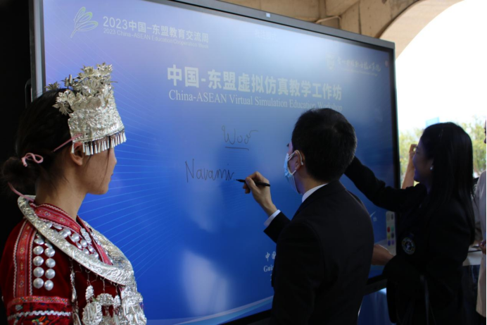 图2 东盟教育代表在虚拟仿真教学工作坊签到
